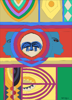 This morning we tried one of this year’s Kick Start Summer Learning Journey activities. The purpose of this task was to experiment with colours by mixing colours from the original palette with pop colours. This allowed us to recolours famous painting or images of landmarks around the world.the picture i chose is called moon masque by Lois Mailou Jones.